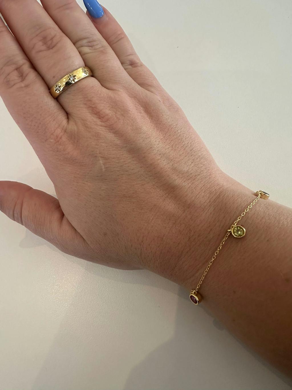 To find your bracelet size, wrap a flexible tape measure or a piece of string around your wrist just above the wrist bone. If you’re using string, mark where it overlaps and then measure it against a ruler. Add 2 cm to your wrist measurement for a comfortable fit. For a looser style, you may choose to size up further.