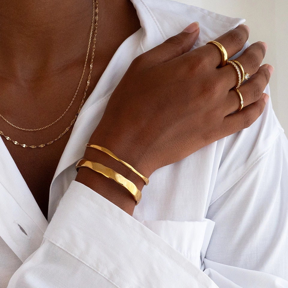 Our jewellery is hypoallergenic and brass-free, ensuring that it will not cause any green discolouration on the skin.